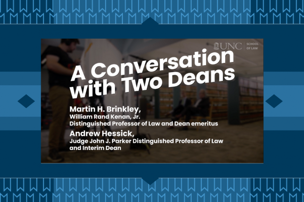 Carolina Law magazine sat down with Dean Emeritus Martin Brinkley and Interim Dean Andy Hessick to discuss the past, present, and future of Carolina Law. They share fun facts and first impressions of each other, as well as what the future holds for the law school and how alumni can help.